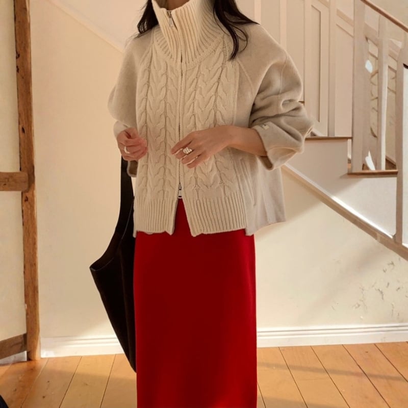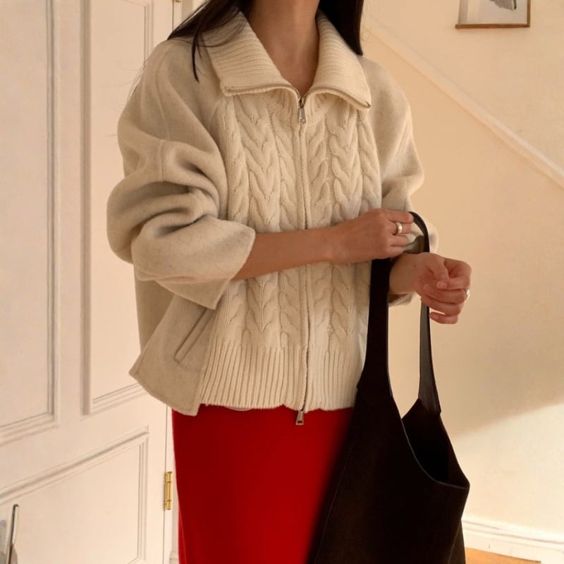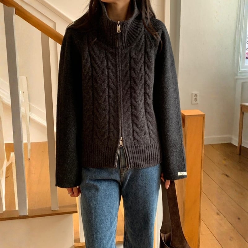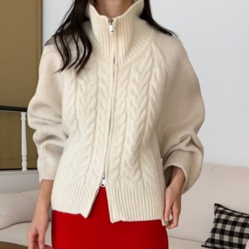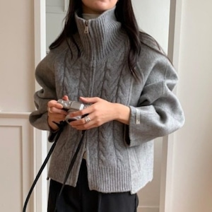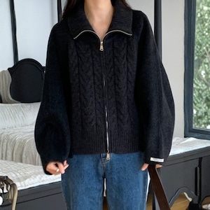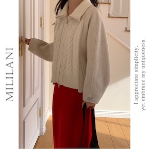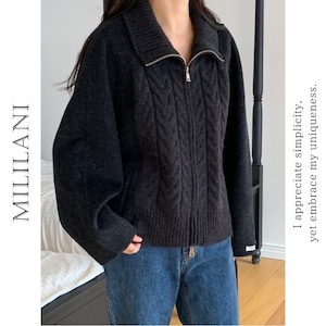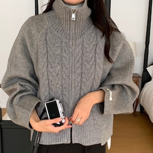 ゆったり着れるダブルジッパーのニットカーディガン。