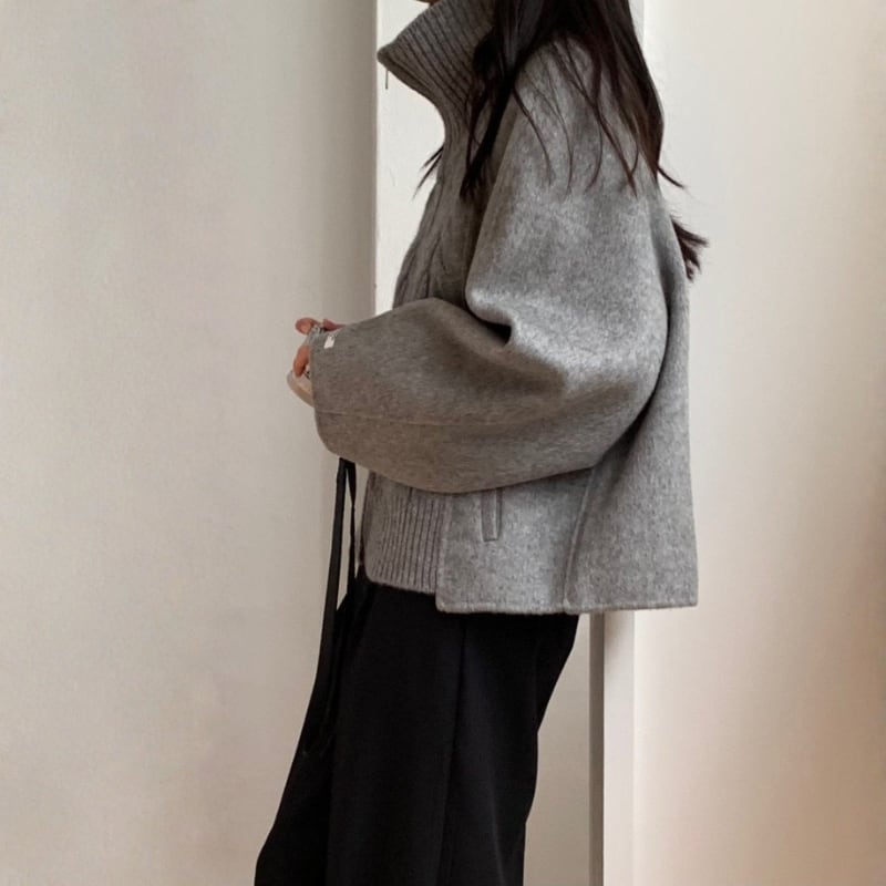ハイネックデザインが首元を暖かく包み込み、小顔効果も期待できます。