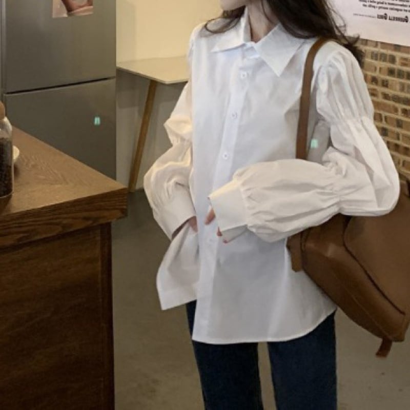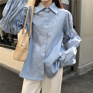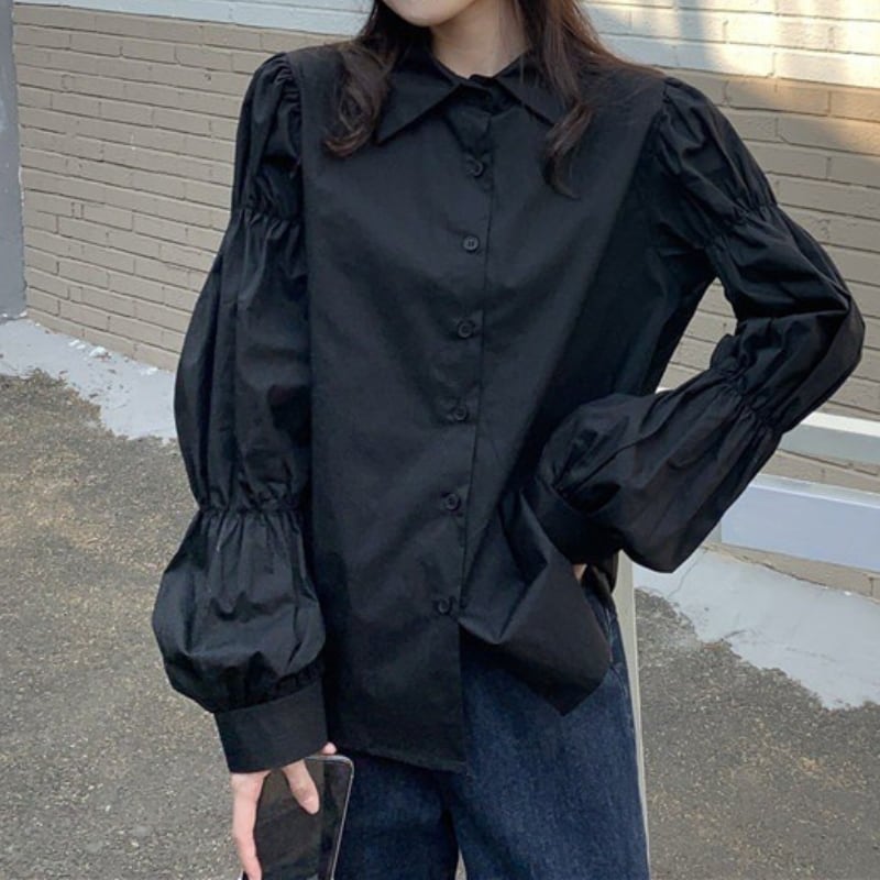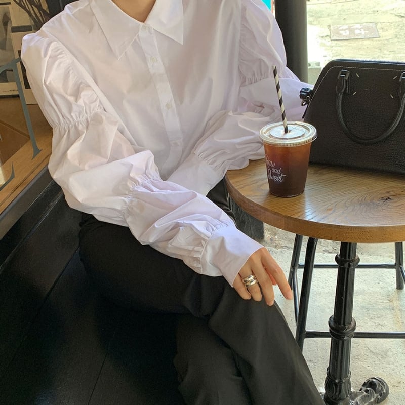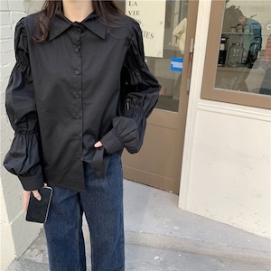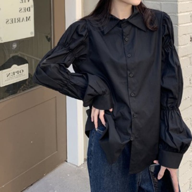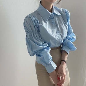 ギャザーパフスリーブ シャツカラー ルーズフィットシャツ ◆3color 204589