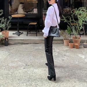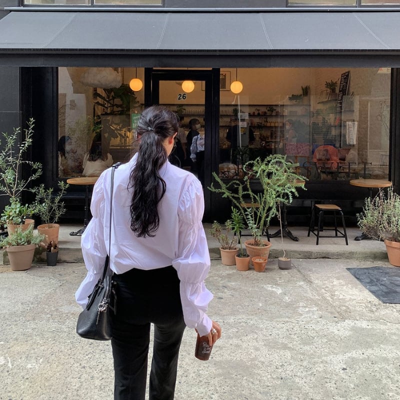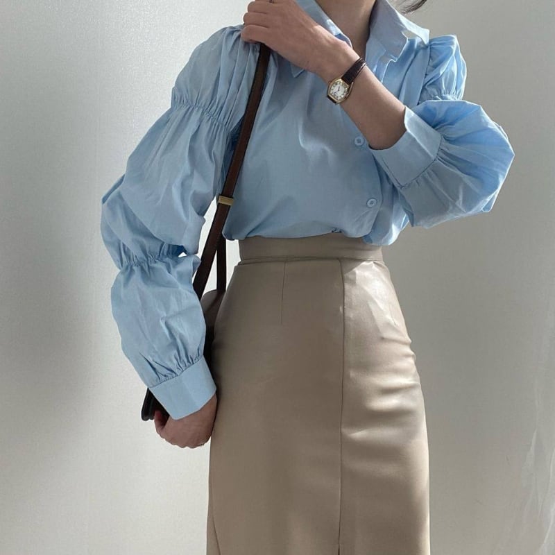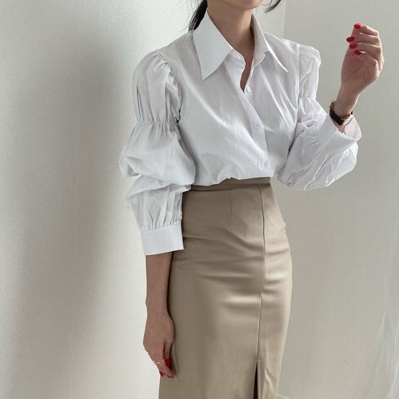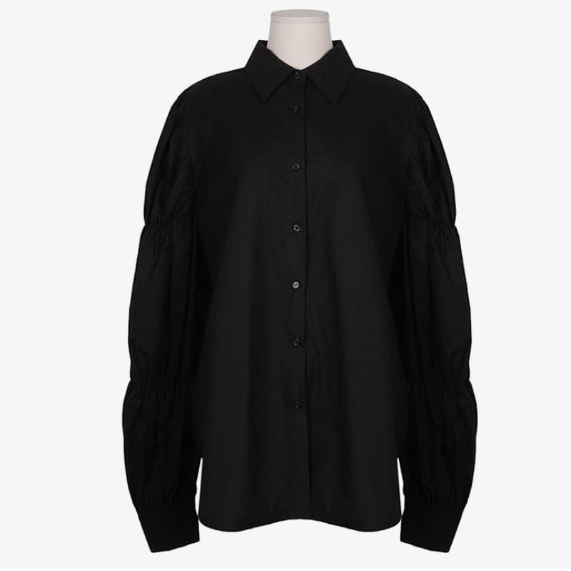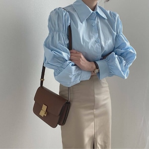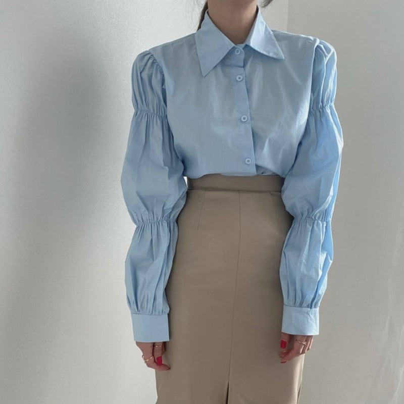 ギャザーパフスリーブ シャツカラー ルーズフィットシャツ ◆3color 204589