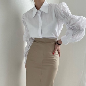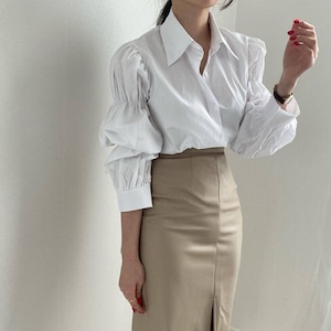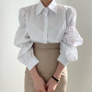 ふんわりとしたパフスリーブが目を引くスタイリッシュなシャツ。