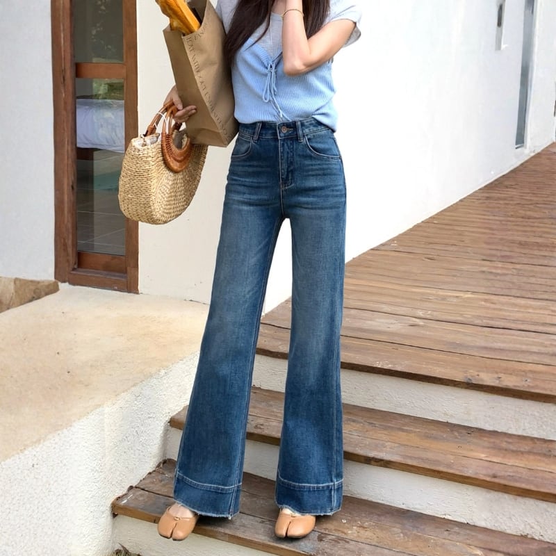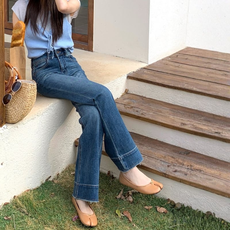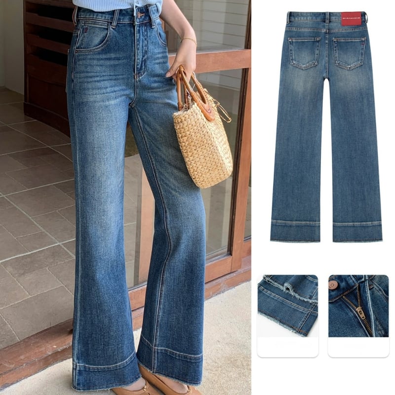 フリンジヘム ハイライズ ブーツカット デニムパンツ 204601