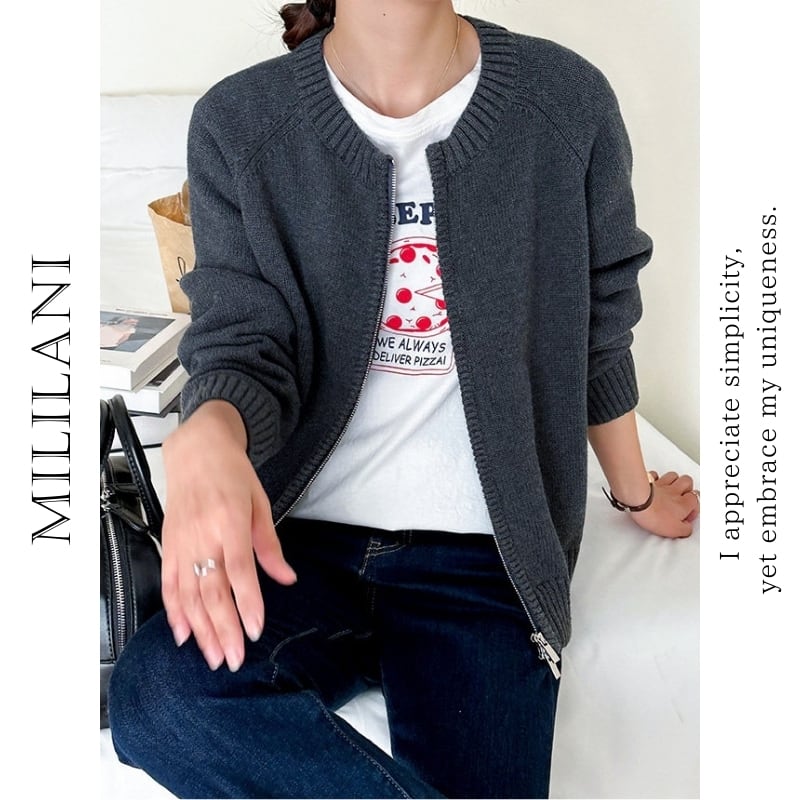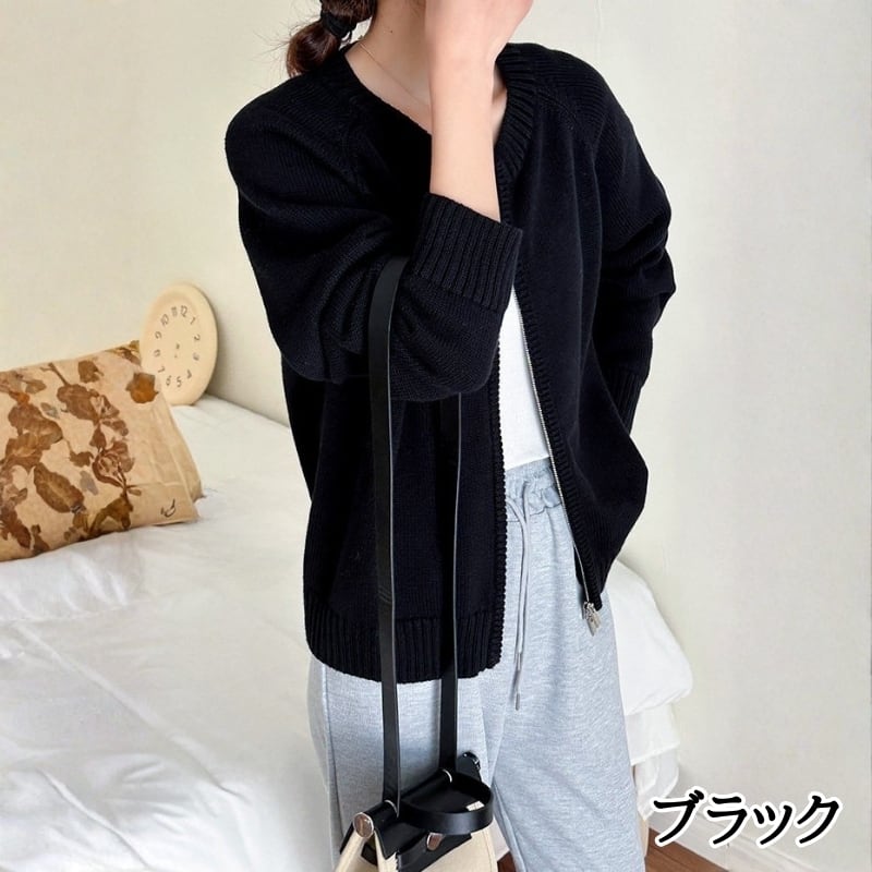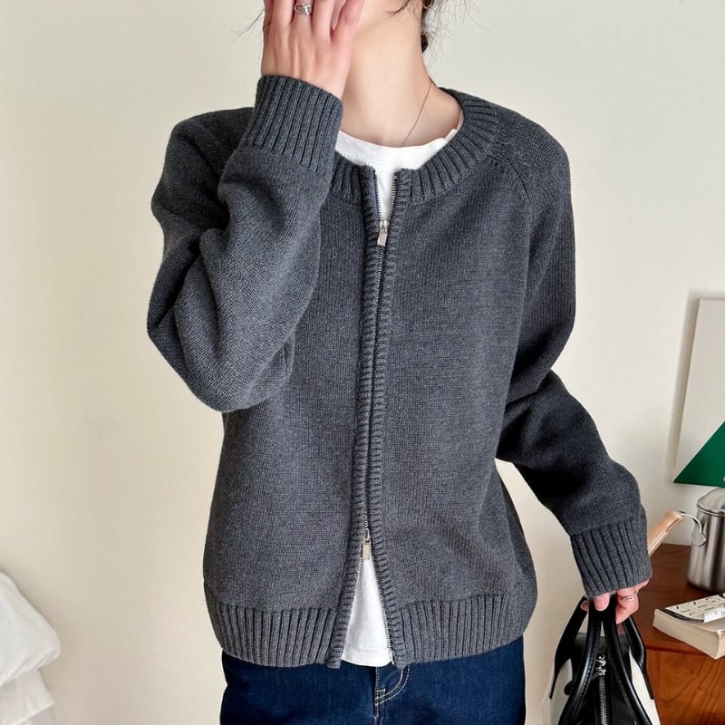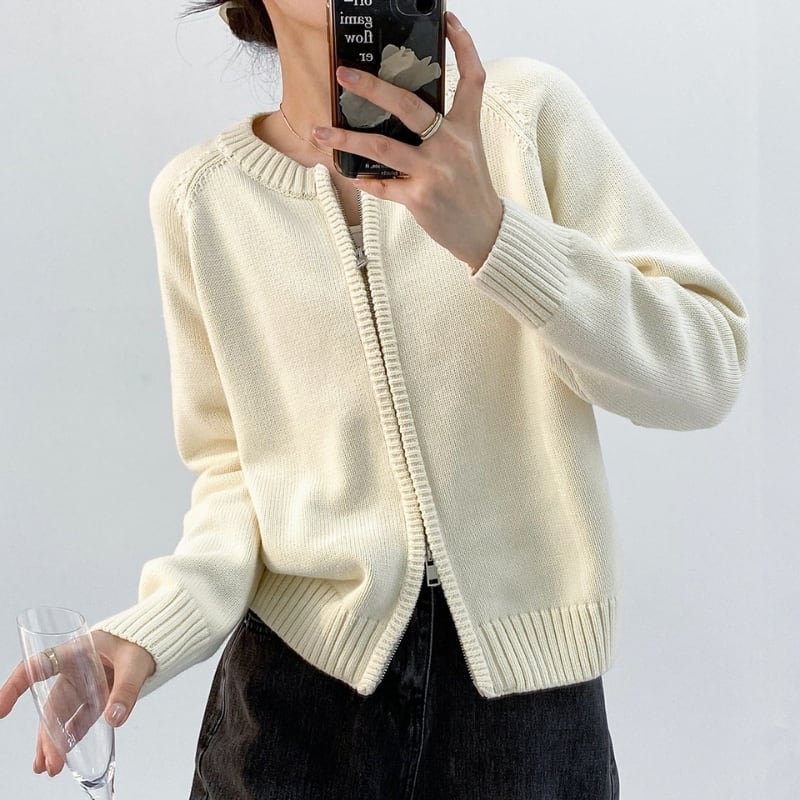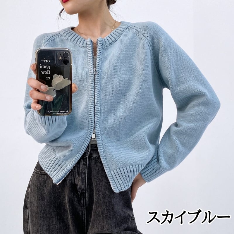 ダブルジップアップ 長袖 ニットカーディガン ◆4color 204612