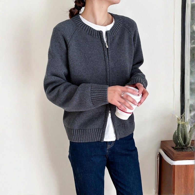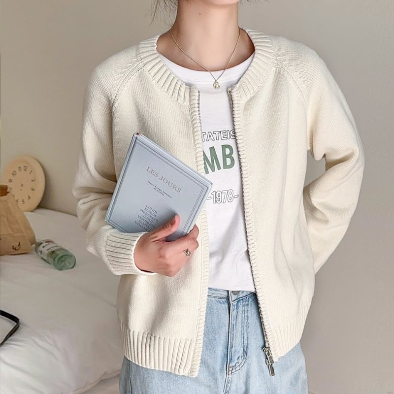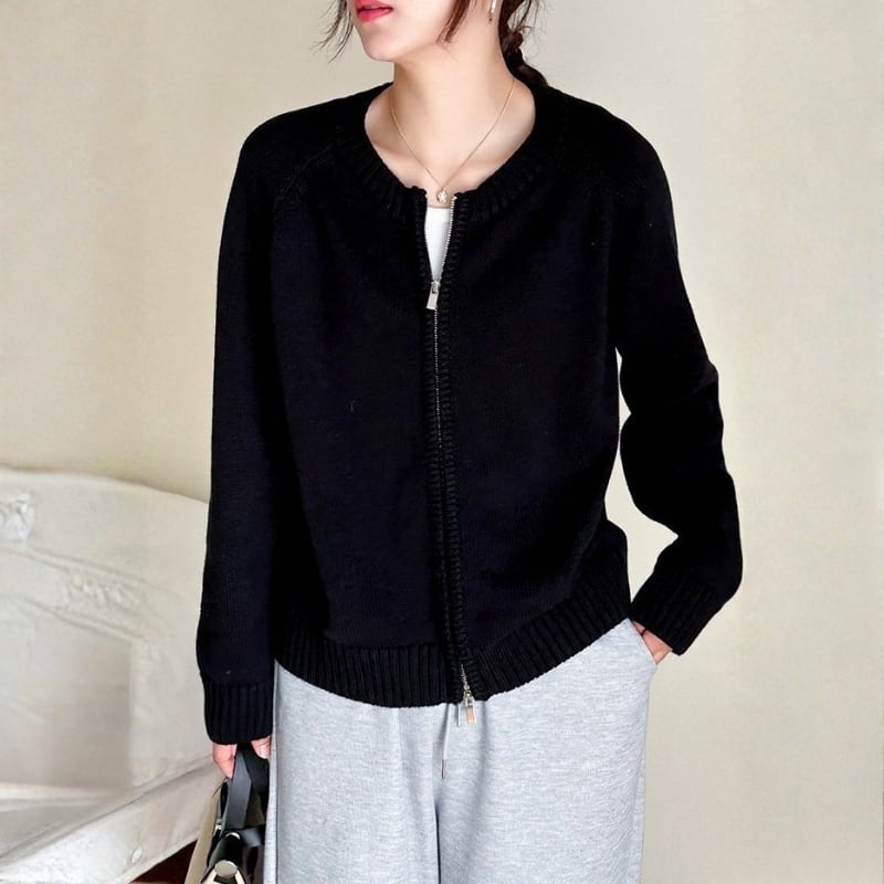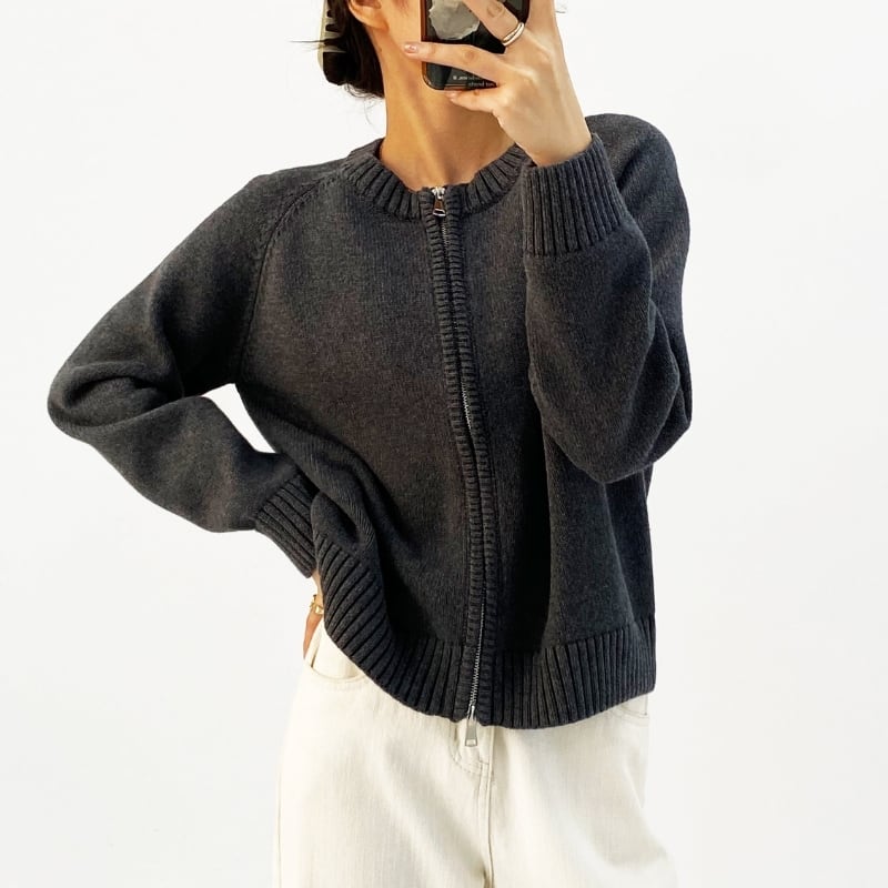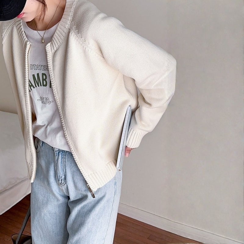 ダブルジップアップ 長袖 ニットカーディガン ◆4color 204612