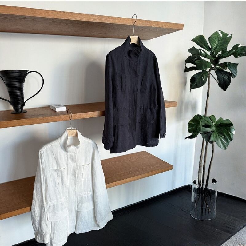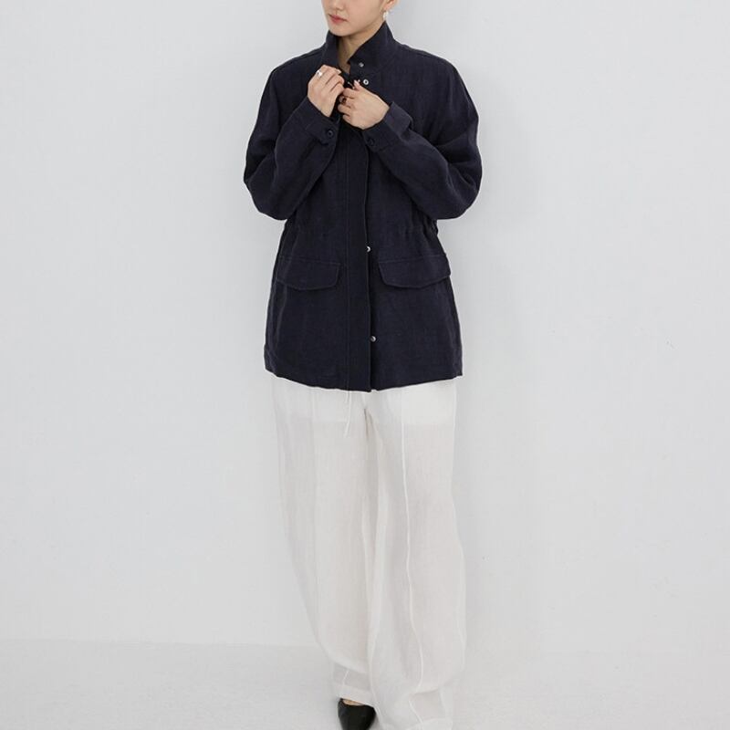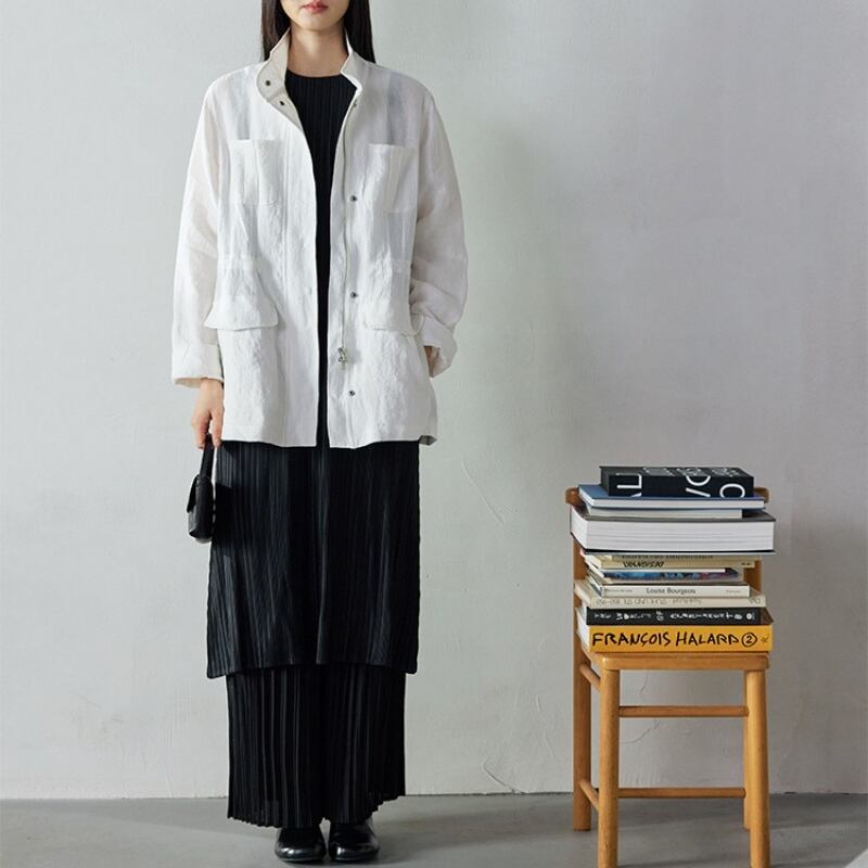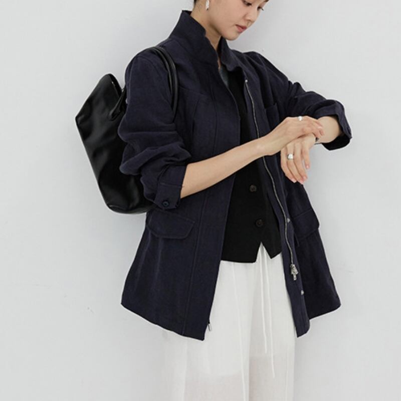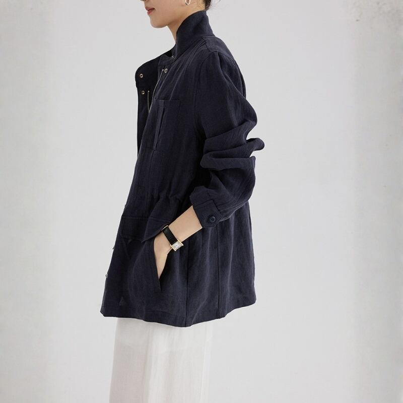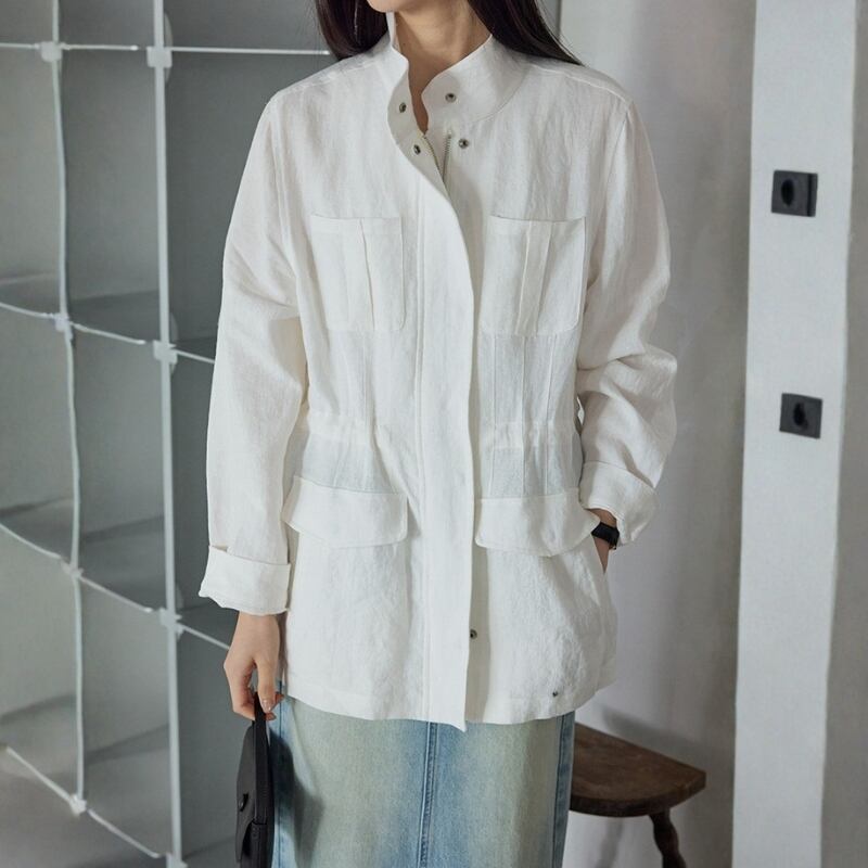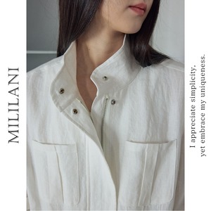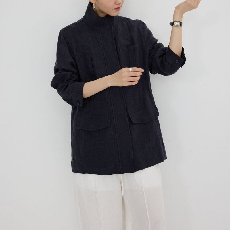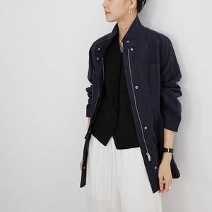 マルチポケット ハイカラージップアップ リネンジャケット ◆2color 204620