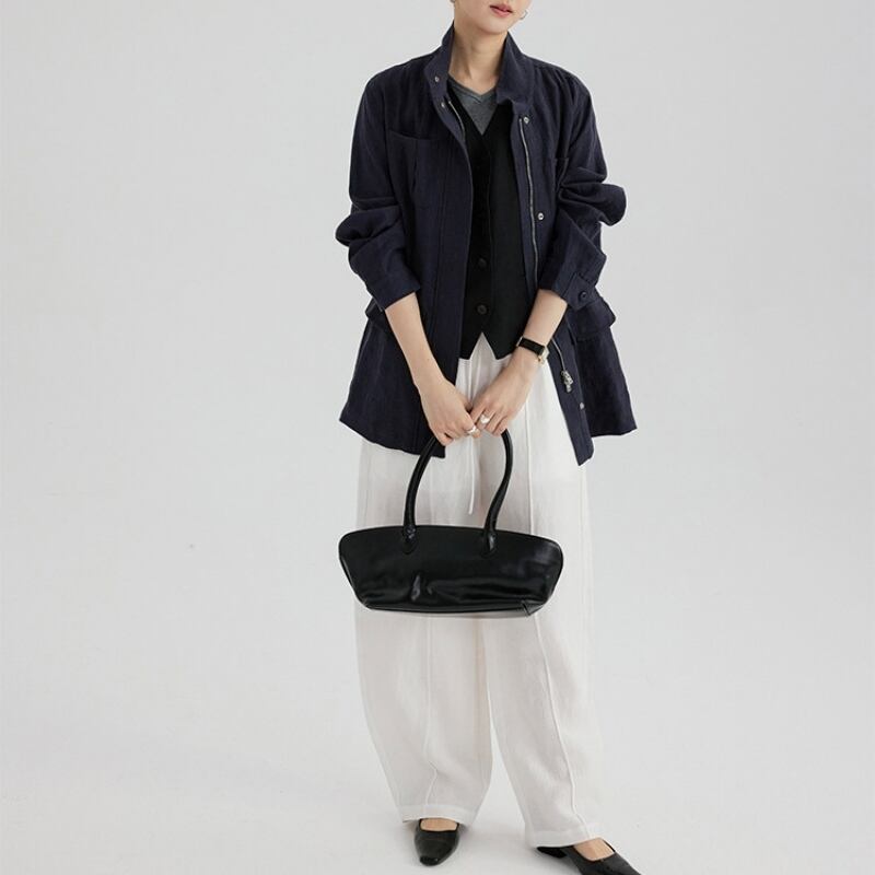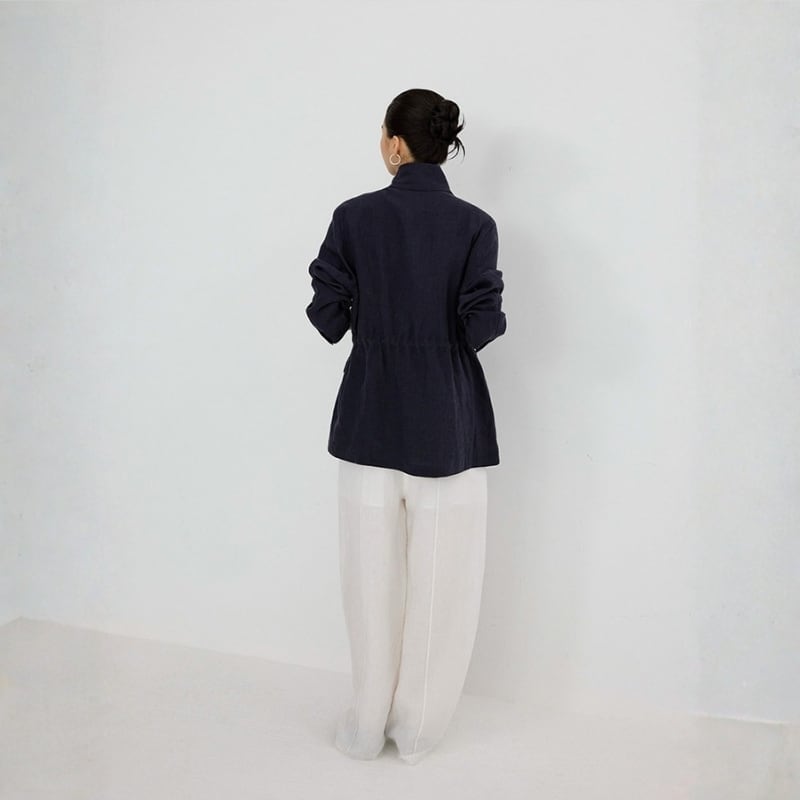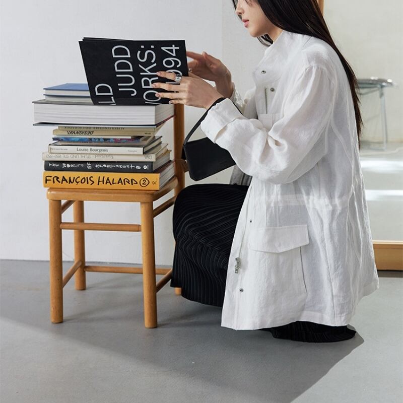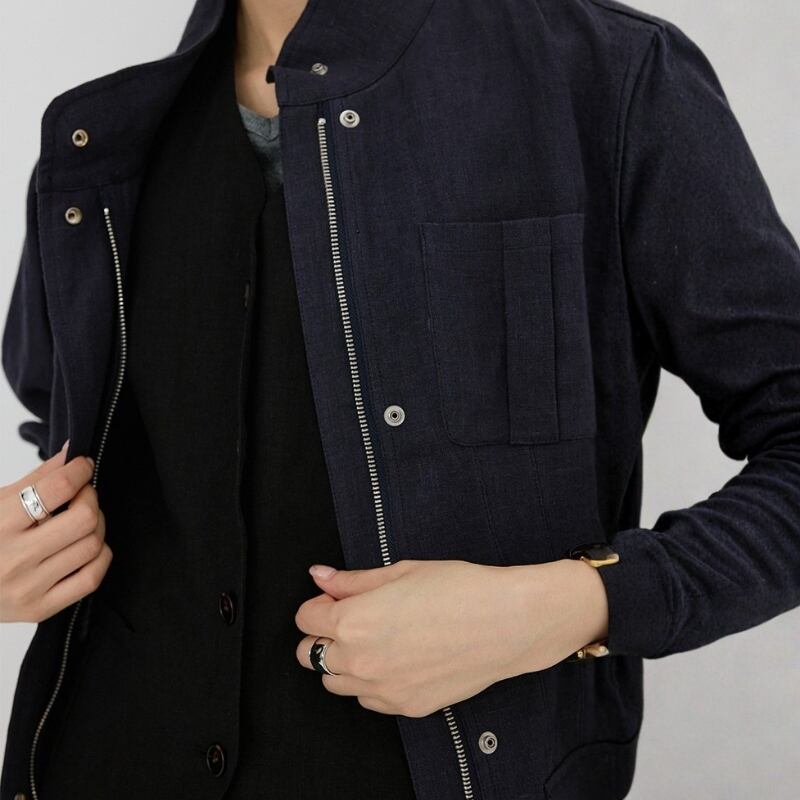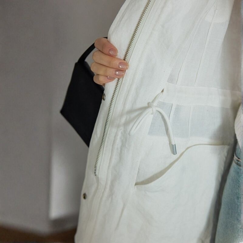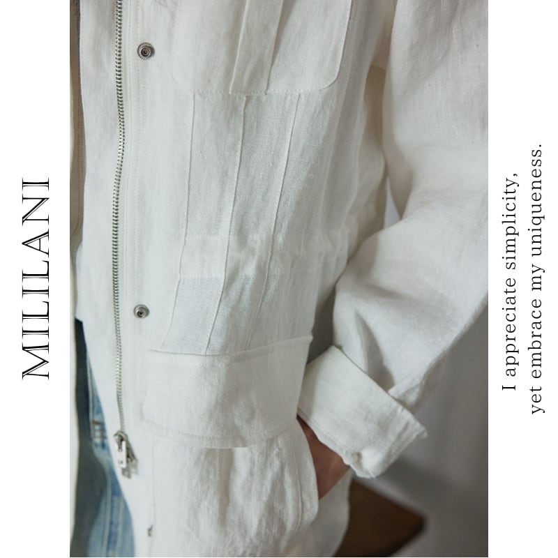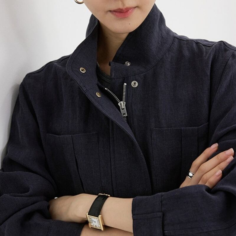マルチポケット ハイカラージップアップ リネンジャケット ◆2color 204620