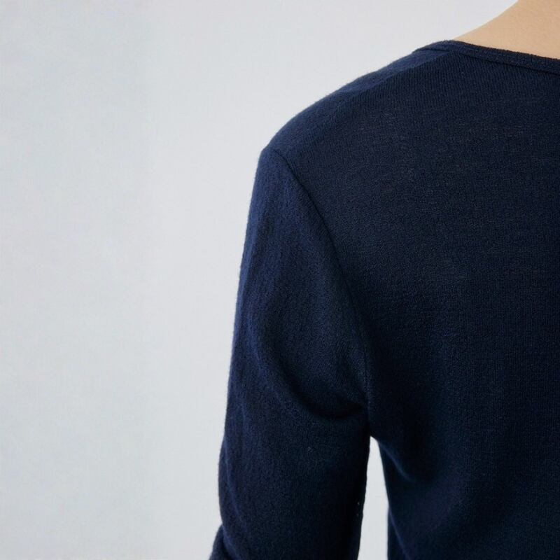 シンプルなデザインで着回し力抜群の長袖カーディガン。