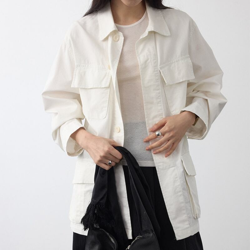 メンズライクな着こなしが楽しめるシャツジャケット。