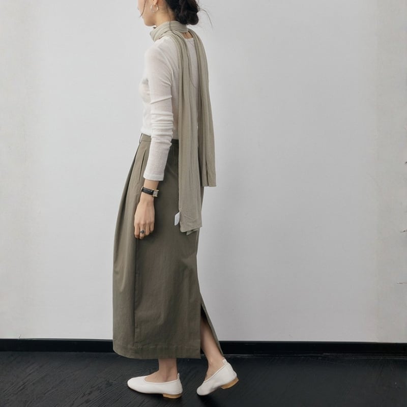 シンプルなトップスと合わせるだけで、こなれ感のあるスタイリングが完成します。