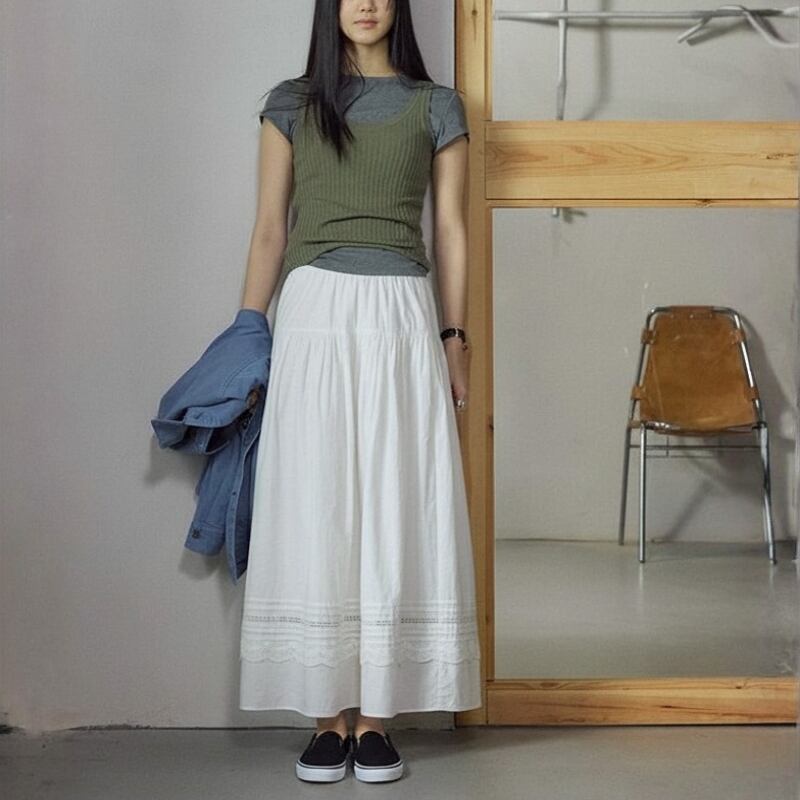 ゴムウエスト ティアード Aライン スカート 204636