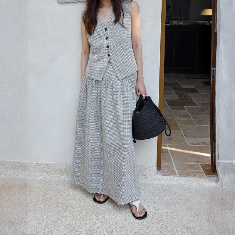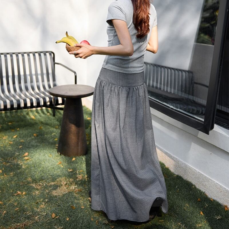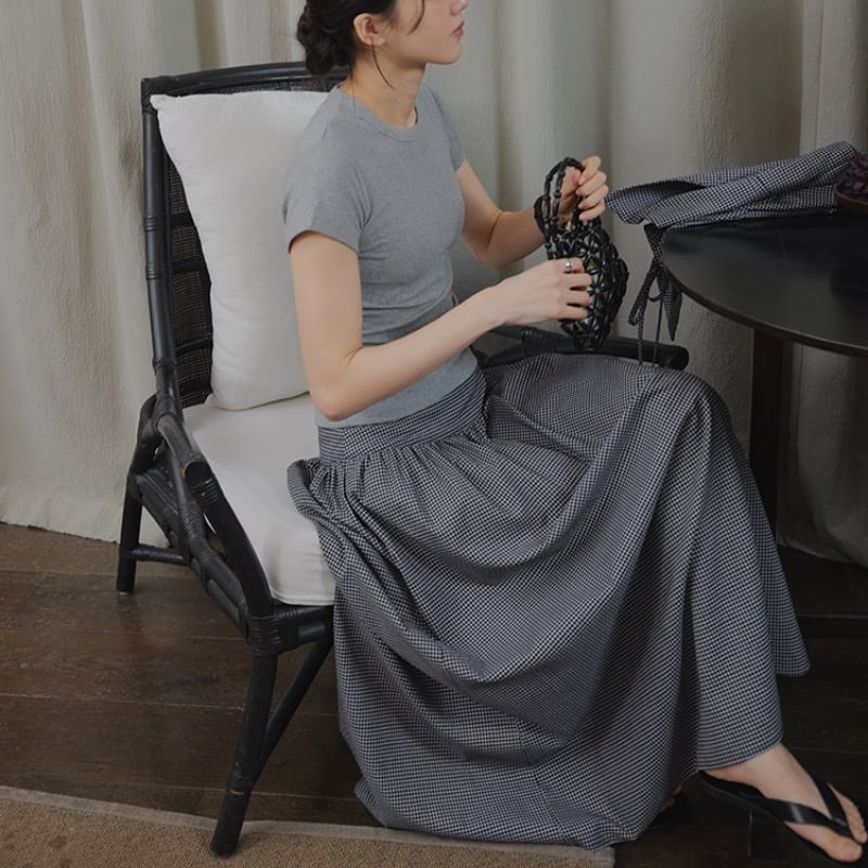 シンプルなトップスと合わせると、スカートのフレア感が引き立ち、女性らしいシルエットを演出します。