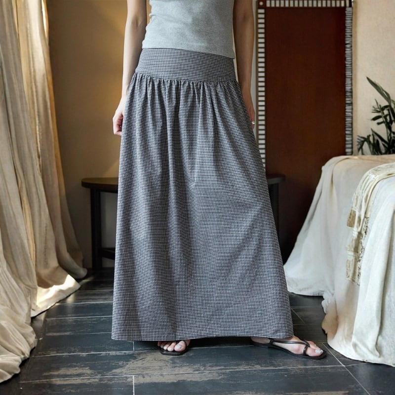 ギャザー マキシ丈 フレア ロングスカート ◆2color 204639