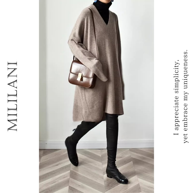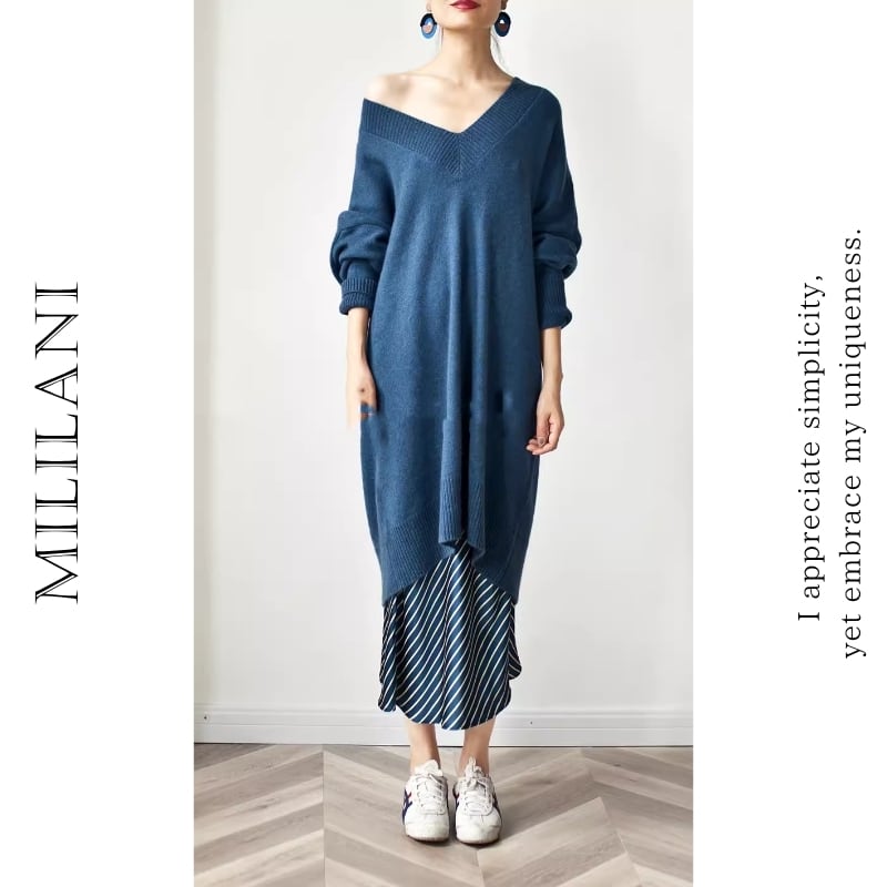 ボリューム感のあるデザインですが深めのVネックがデコルテをスッキリ見せてくれます♡