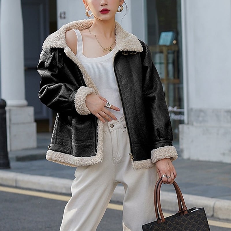 レザー調ボアブルゾンフライトジャケット ◆2col 201817