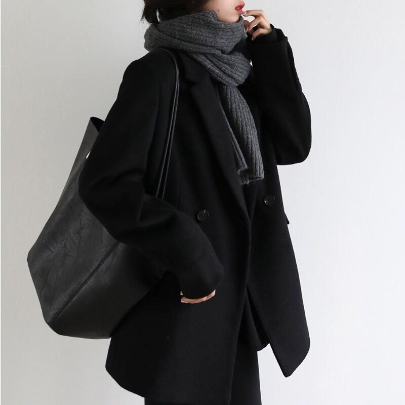 季節感たっぷりのウール素材でメンズライクになりがちなジャケットスタイルを大人の女性らしい雰囲気に♪