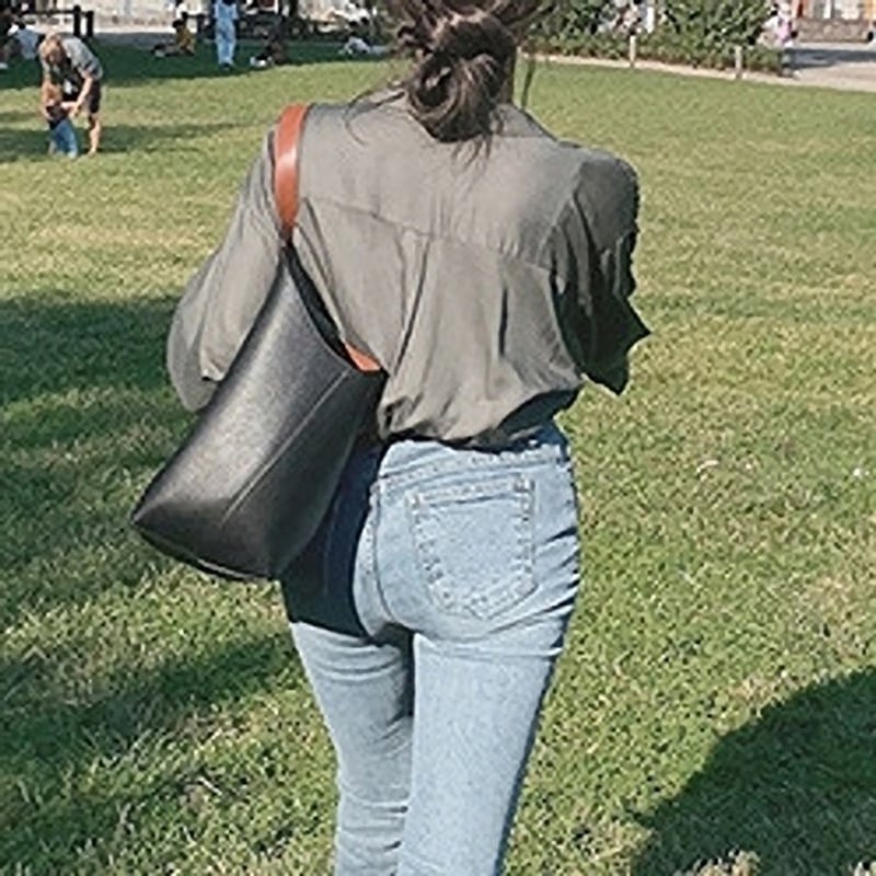ざっくりと持ちやすいワンハンドルのバケツ型バッグ。