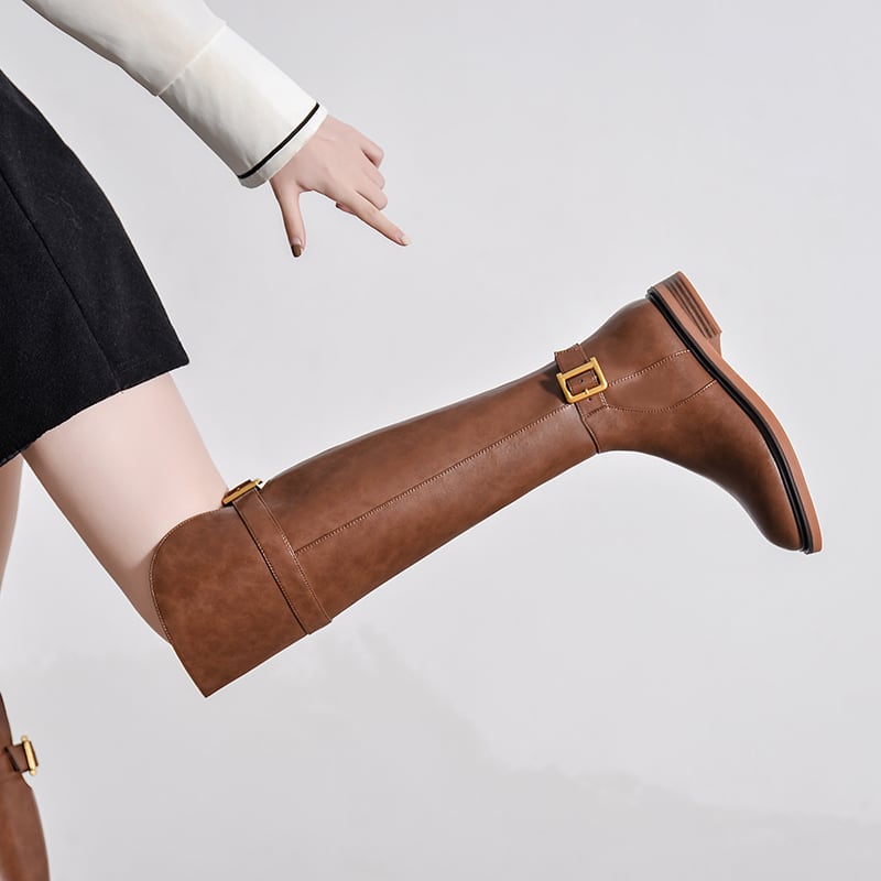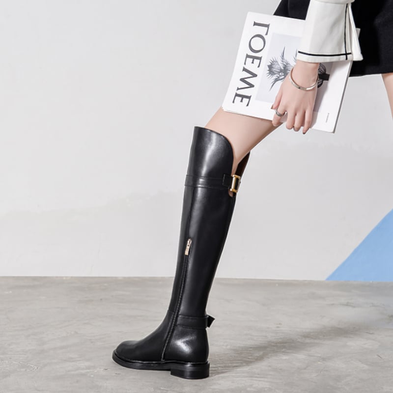 ミニ丈のボトムと合わせたいトレンド感たっぷりのニーハイブーツ♡