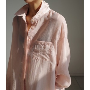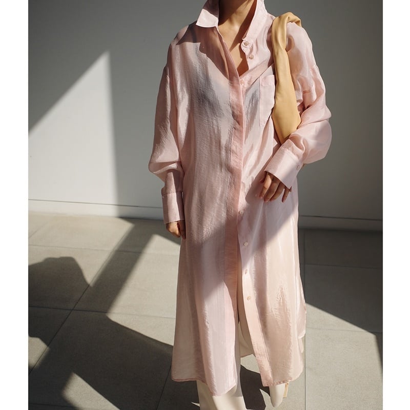 透け感がありレイヤードスタイルが楽しめるロングシャツ。