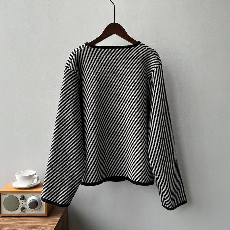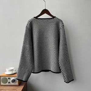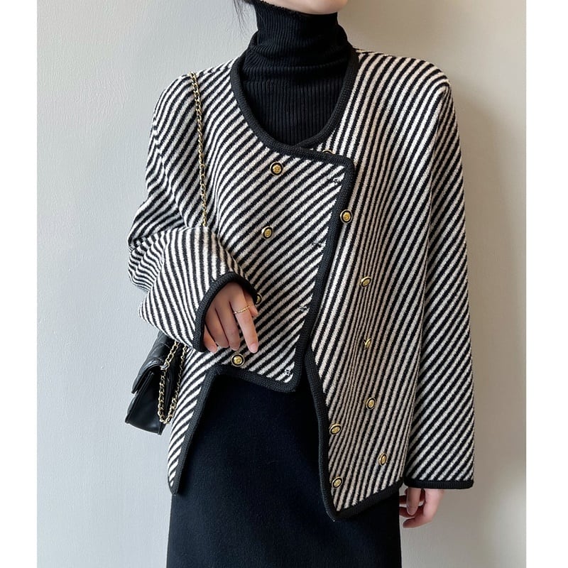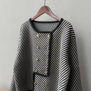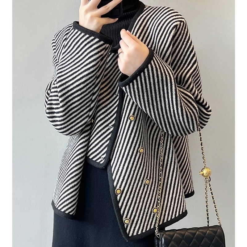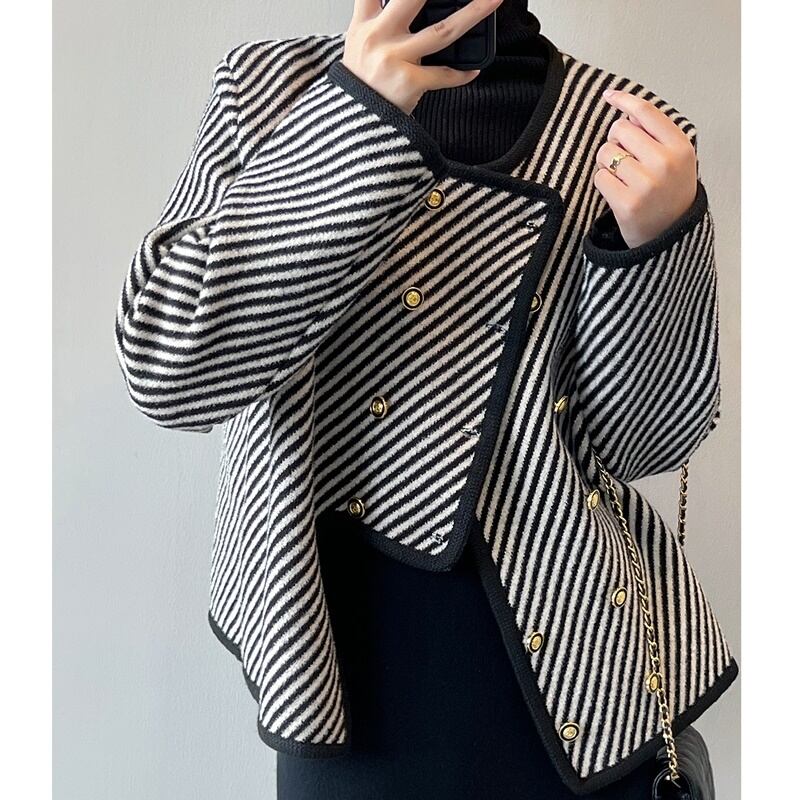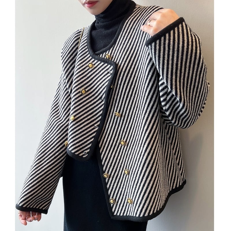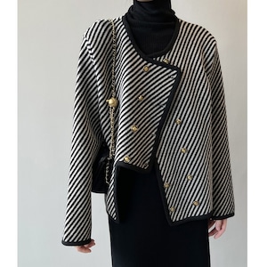 ゴールドボタン ストライプ ノーカラージャケット 202943