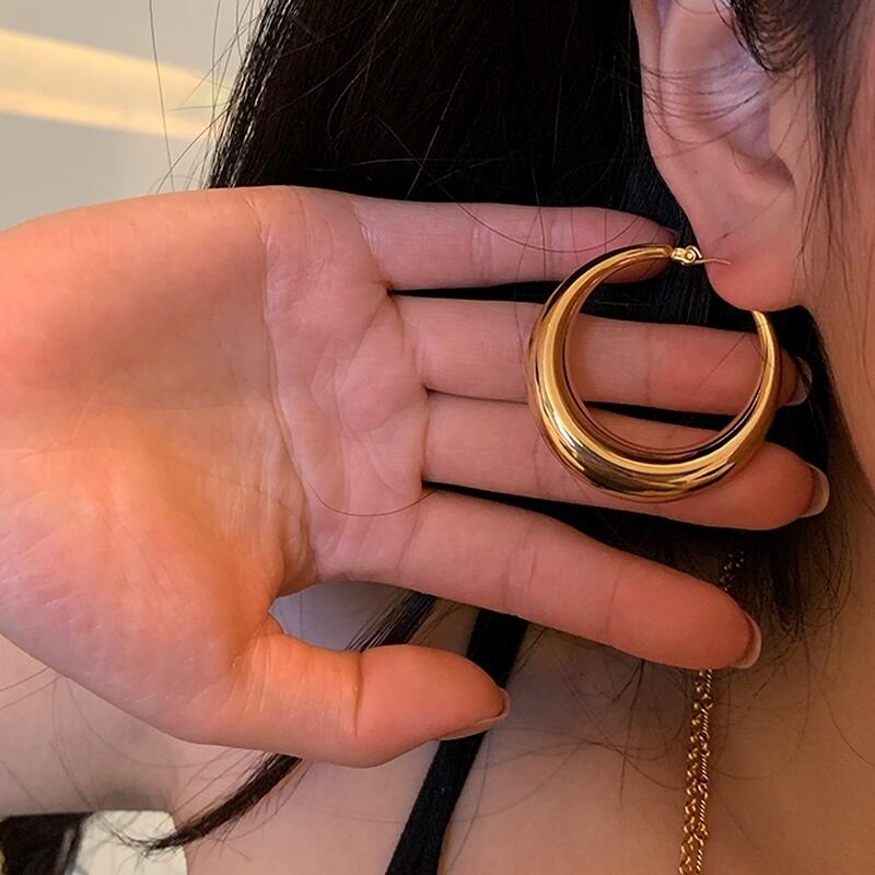 ぷっくりとしたボリューム感がキュートなフープピアス。