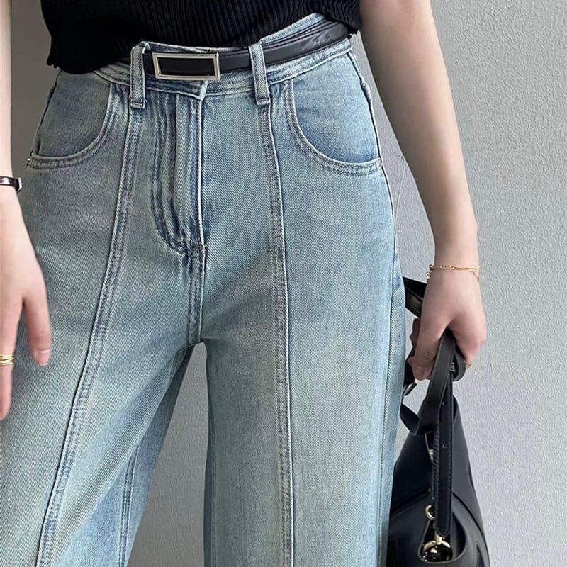 ハイウエスト+縦ラインのステッチ入りで脚長効果抜群のワイドデニムパンツ!