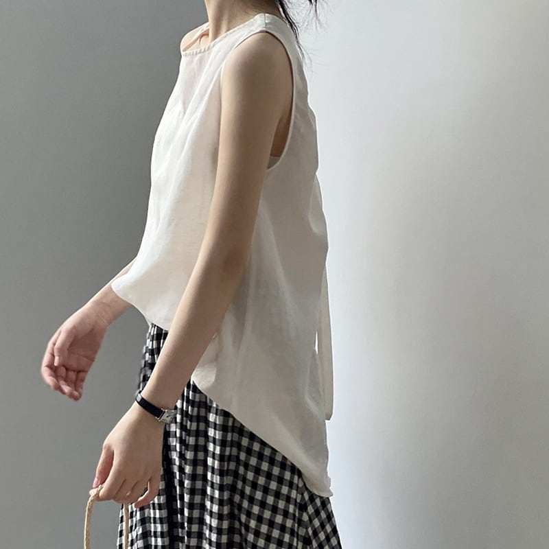 ノースリーブ バック ボウタイブラウス ◆2col 203868
