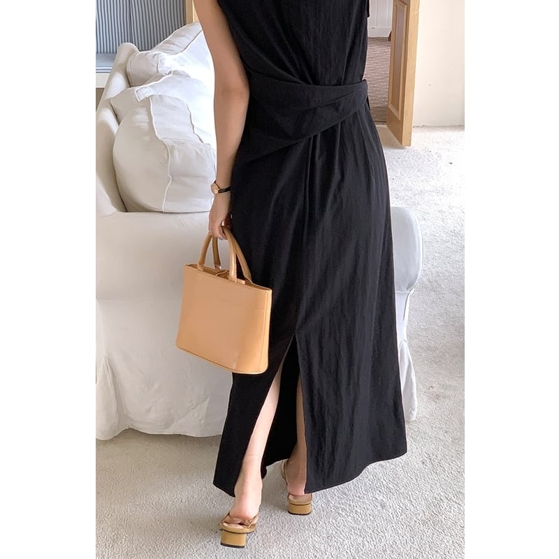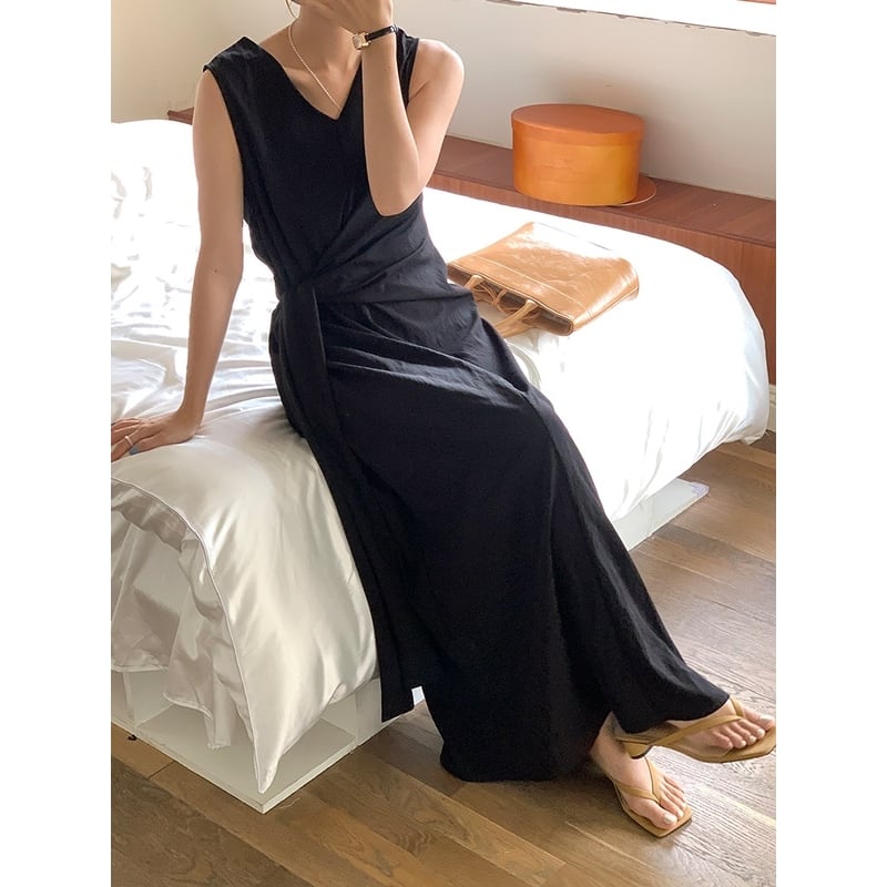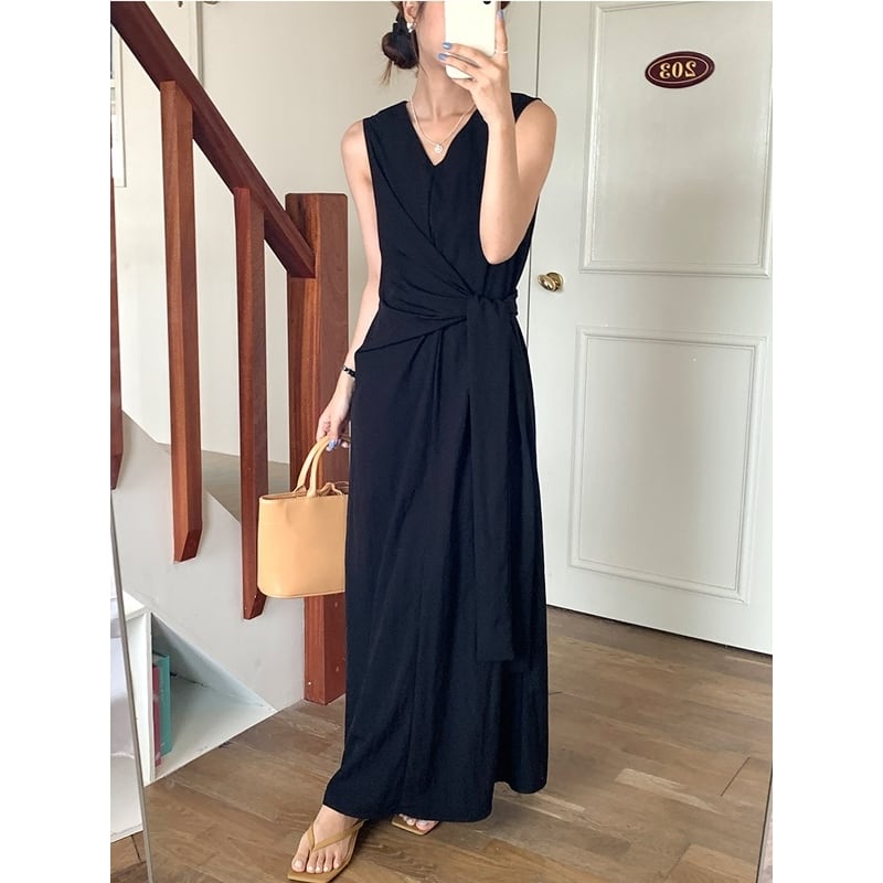 Vネック ノースリーブ ロング ワンピース ◆3col 203883