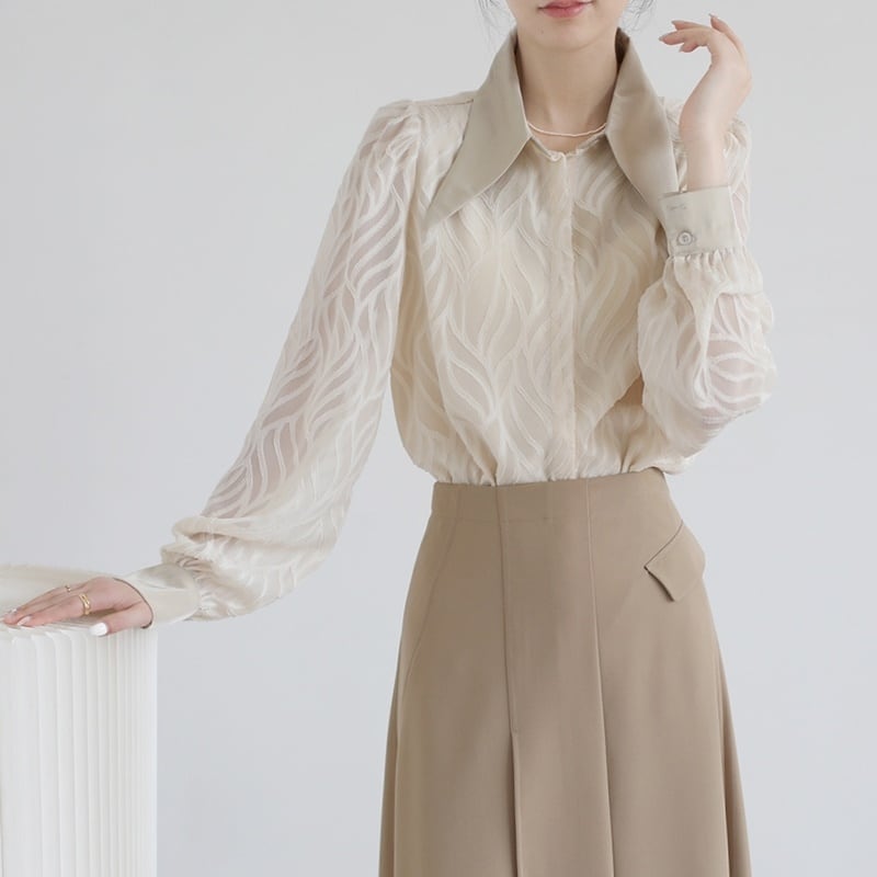 ジャガード シアー ブラウス ◆2col 204004