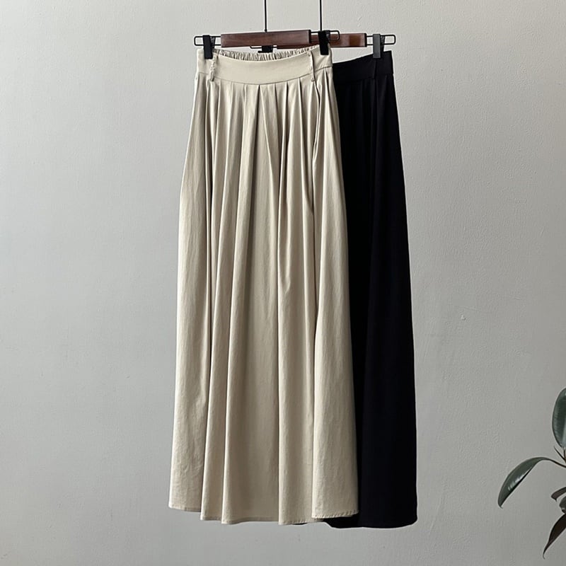 ハイウエスト フレア ロングプリーツスカート ◆2col 204102